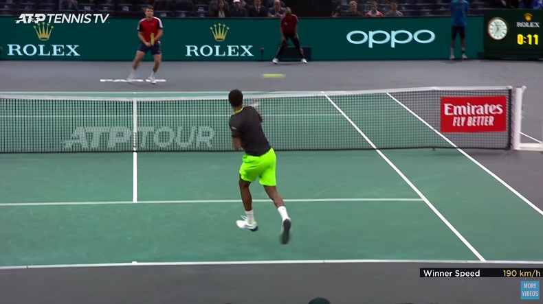Gaël Monfils a bataillé pour dominer Miomir Kecmanovic (4-6, 7-5, 6-3) au premier tour du Rolex Paris Masters. Le Parisien, 22e mondial, a peu à peu pris la mesure du Serbe, sorti des qualifications, pour finalement aller chercher la victoire. Qui dit La Monf dit “Hot Shot” et Gaël a fait parler sa puissance de frappe cette fois avec un coup droit gagnant flashé à 190km/h. Une vitesse qui se rapproche du record détenu par James Blake sur un retour gagnant à 201km/h, à l’US Open 2011.
