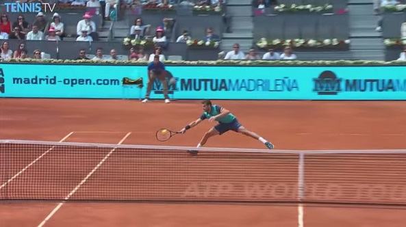 Même quand il se fait largement dominer, Grigor Dimitrov trouve toujours le moyen de sauver les apparences avec un hot shot. On appelle ça le talent. Le Bulgare a en effet subi la loi de Rafael Nadal (6/3 6/4) en quarts de finale du Masters 1000 de Madrid mais il a encore sorti de son chapeau une demi-volée monstrueuse pour faire notre bonheur.