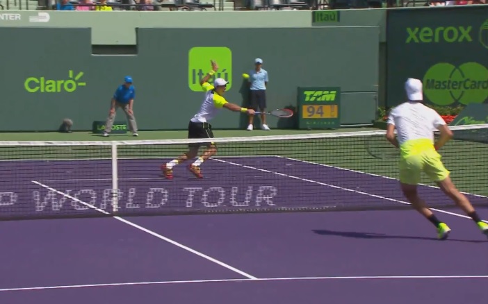 L’Argentine est à l’honneur aujourd’hui avec deux volées de revers signées Carlos Berlocq et Diego Schwartzman pour conclure des joutes au filet au premier tour du Masters 1000 de Miami 2015.