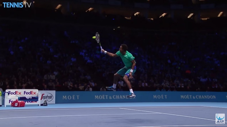 Pour le premier match de sa carrière au Masters, Gaël Monfils a perdu face à Milos Raonic (6/3, 6/4) dans le groupe Ivan Lendl, mais le Français a fait notre bonheur dans le sixième jeu de la première manche en effectuant deux coups de mutant : une amortie à l’aveugle tout d’abord, puis un énorme slam dunk pour revenir à 4/2. Pete Sampras appréciera.