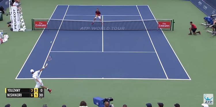 Kei Nishikori est réputé pour avoir un très bon revers à deux mains mais le Japonais s’est distingué au deuxième tour du Masters 1000 de Cincinnati 2016 avec un revers à une main de mutant. Face à Mikhaïl Youzhny, le n°7 mondial a lâché un passing impressionnant qui lui a donné le sourire.