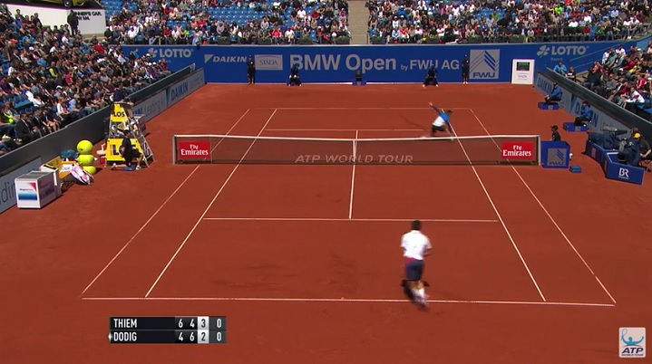 Dominic Thiem a dominé Ivan Dodig en quarts de finale du tournoi de Munich 2016. Le jeune Autrichien a marqué un point magnifique au cours de ce match conclu par une merveille de volée rétro.