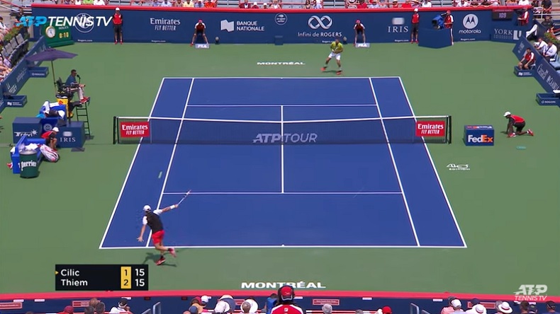 Comme d’habitude, Dominic Thiem a sacoché sévère pour vaincre Marin Cilic (7/6, 6/4) au troisième tour du Masters de Montréal 2019. Smashs, coups droits, revers, Dominator a balancé des énormes parpaings dont un revers long de ligne sublime au début de la rencontre.