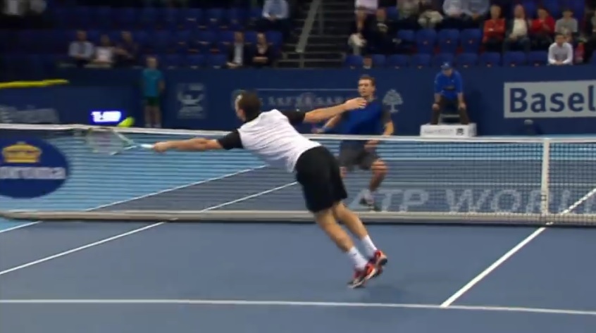 Quand Michael Llodra joue en roue libre, il fait souvent des points extraordinaires. Souvenez-vous de de ce jeu monstrueux contre Andy Murray à l’Open d’Australie 2012. Au deuxième tour du tournoi de Bâle 2013 contre Paul-Henri Mathieu, le Parisien fait face à trois balles de match et il sauve la première en marchant et en s’amusant avec PHM. Il s’inclinera tout de même 6/4 6/3.
