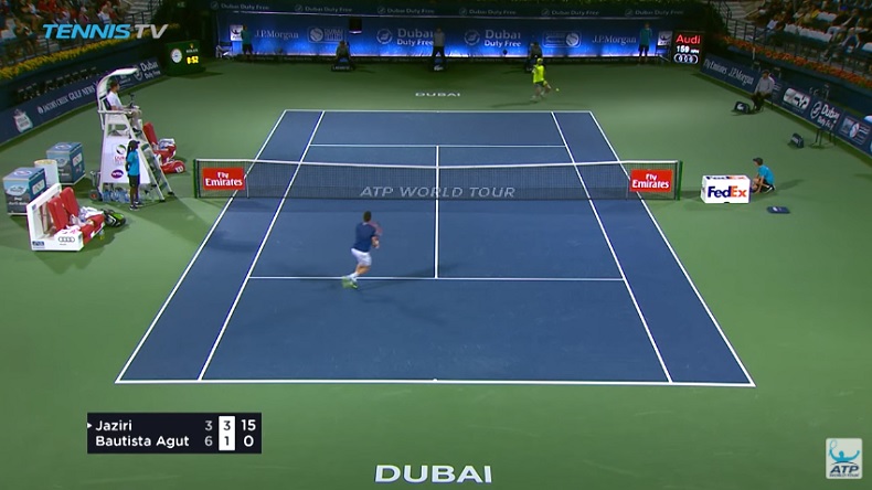 Invité, Malek Jaziri, 117e mondial, a fait honneur à sa wild-card au tournoi de Dubaï 2018. Le Tunisien a atteint les demi-finales et il a vu son parcours prendre fin face au solide Roberto Bautista Agut (23e mondial), le seul espagnol meilleur sur dur que sur terre. En confiance, Jaziri a lâché quelques coups énormes lors de sa semaine dans les Emirats comme ce revers gagnant à une main absurde en demies. Précision qui donne encore plus de cachet à ce point : le natif de Bizerte a un revers à deux mains normalement.
