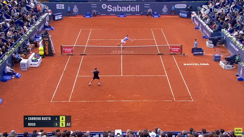 Pablo Carreno Busta a sauvé trois balles de match dans le deuxième set contre Casper Ruud en quarts de finale du tournoi de Barcelone 2022, dont une magnifique, au courage, en s’engageant dans toutes les frappes et en finissant de façon spectaculaire.