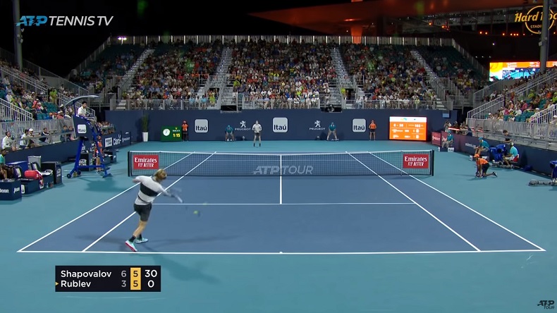 30 secondes de bonheur, ça vous dit ? Alors regardez cet échange de 26 frappes, filmé à hauteur du court, entre deux gros cogneurs, Denis Shapovalov et Andrey Rublev, au troisième tour du Masters 1000 de Miami 2019. Pour les variations, on repassera, mais quel régal cet angle de vue !