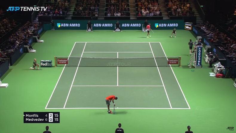 Daniil Medvedev doit être un bon calvaire à affronter. Le jeune Russe joue vite, à plat, couvre bien son terrain malgré son gabarit longiligne (1m98, 83kg), et il ne fait pas une faute. Gaël Monfils a dû livrer une bataille intense pour s’en défaire (4/6, 6/3, 6/4) en demi-finales du tournoi de Rotterdam 2019. Avec deux joueurs adeptes des bras de fer du fond du court, il y a eu quelques rallyes intenses lors de cette rencontre, dont celui-ci, de 25 frappes.