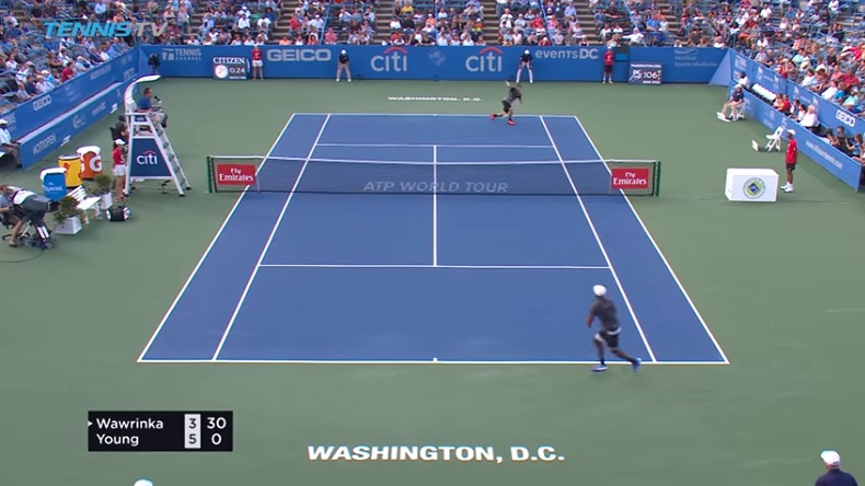 Défait par Donald Young, 7/6 au der, au premier tour du tournoi de Washington 2018, Stan Wawrinka a néanmoins régalé à la fin du premier set avec un revers à une main de volée de super-héros. Iron Stan.