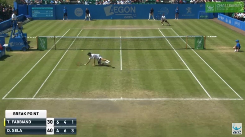 Qui a dit que la taille était importante ? Du haut de ses 1m75, Dudi Sela fait partie des plus petits joueurs du circuit, mais cela ne l’empêche pas de bien jouer sur gazon. Certes, l’Israélien, 98e mondial, ne va pas claquer 20 aces par rencontre, mais il a d’autres qualités à faire valoir. Il a d’ailleurs remporté sur cette surface le tournoi Challenger de Nottingham 2017 et il s’est illustré en finale en réalisant une volée en plongeant remarquable.