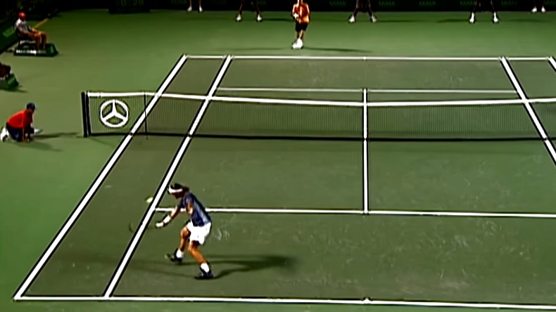 Le Suisse, n°14 mondial à l’époque, réussit un point exceptionnel : une volée courte-croisée du fond du court ! Un coup de raquette superbe qui fera sourire son entraîneur Peter Lundgren. Roger Federer dominera le fougueux Australien (6/3, 6/4) et fera d’une pierre deux coups avec la première victoire de sa carrière contre un n°1 mondial et sa première qualification en finale d’un Masters 1000, où il s’inclinera contre Andre Agassi (6/3, 6/3, 3/6, 6/4).
