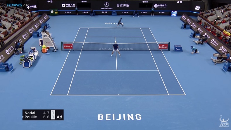 Lucas Pouille a remporté un point monstrueux contre Rafael Nadal au premier tour du tournoi de Pékin 2017. A l’initiative, le Français a fait courir le n°1 mondial, qui a failli s’en sortir sur un tweener lobé. Concernant le résultat, l’Espagnol s’est difficilement imposé en trois sets après avoir sauvé deux balles de match.