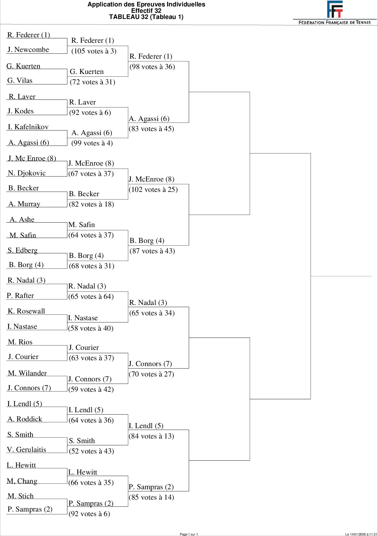 Les quarts de finale du tournoi des légendes débutent ce samedi sur le court central de Tennis Legend avec l’affiche entre Roger Federer, tête de série n°1, et Andre Agassi, tête de série n°6. Comme toujours, les votes des internautes décident de l’issue de la rencontre et ils sont ouverts jusqu’au lundi 12 août à 12h.