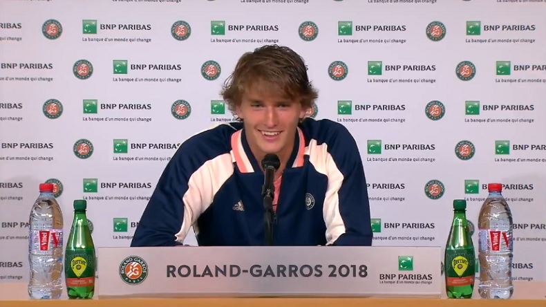 De bonne humeur après sa victoire en cinq sets sur Dusan Lajovic (la 4e de sa carrière en 8 matches en 5 sets en Grand Chelem) au deuxième tour de Roland-Garros 2018, Alexander Zverev, n°3 mondial, est tombé sous le charme de l’accent d’un journaliste britannique en conférence de presse. Un moment amusant.