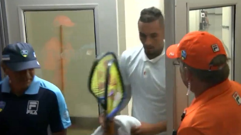 Nonchalance absolue, trash talk avec le directeur du jeu, qualifié de « patate sur une chaise » et de « pire arbitre du jeu », rapporte L’Equipe, le natif de Canberra a mis les nerfs de tous les acteurs à rude épreuve. Juste àprès la perte du deuxième set au tie-break, Kyrgios a pris un point de pénalité. Dans la foulée, pour éviter le jeu de pénalité, il est sorti du court avec deux raquettes à la main, qu’il est allé exploser à l’abri des regards, mais pas des caméras. A son retour sur le terrain, Fergus Murphy, décontenancé, n’a pas vraiment su quoi faire et dit au superviseur à la radio : “Il est parti avec deux raquettes et il est revenu avec deux raquettes cassées.“