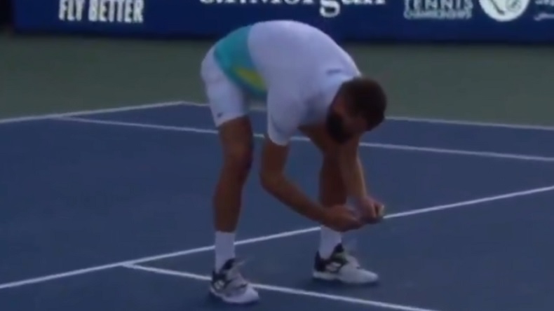 Partager la publication "Benoît Paire prend une photo souvenir de la marque d’une de ses quatre balles de match sauvées contre Cilic (Dubaï 2020)"