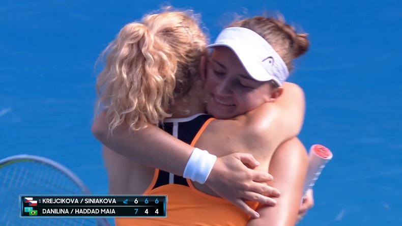 Les patronnes du double dames, Barbora Krejcikova et Katerina Siniakova, têtes de série n°1, ont remporté leur quatrième tournoi du Grand Chelem ensemble à l’Open d’Australie 2022 et les Tchèques se sont adjugées le titre sur une balle de match insolite en mode “double des anciens du club” face à Anna Danilina et Beatriz Haddad Maia (6-7, 6-4, 6-4).