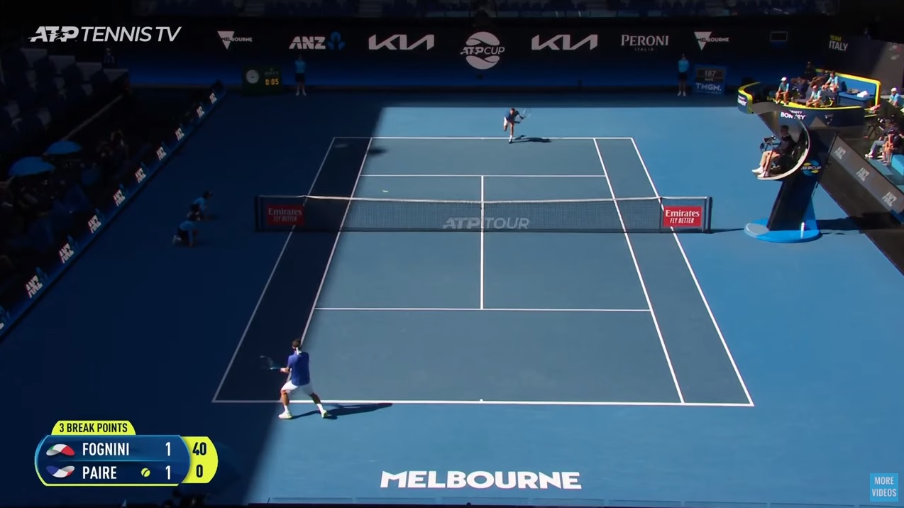 Benoît Paire a perdu contre Fabio Fognini (6-1, 7-6) lors du match entre la France et l’Italie à l’ATP Cup 2021. Le Tricolore, en manque de rythme, a fait un début de match catastrophique à l’image de ce jeu de doubles fautes à un partout. Ou comment faire un break sans toucher la balle.
